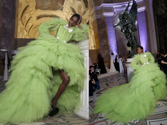 Thiết kế của Giambattista Valli khiến người ta bàn tán không ngớt bởi sự lộng lẫy và cầu kỳ đúng theo tinh thần Haute Couture.