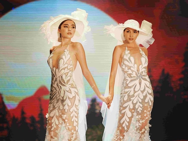 Bất chấp tin đồn yêu đương, hai người đẹp hóa thân thành cô dâu và trình diễn tại festival áo cưới lớn nhất miền Bắc.