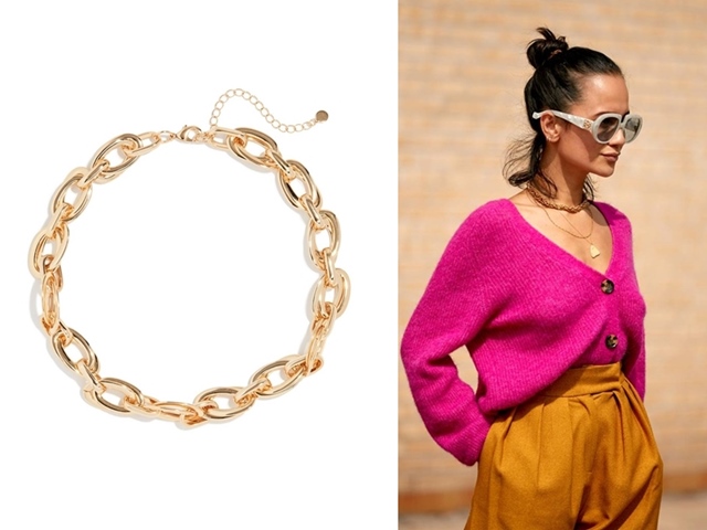 Nên có sự tiết chế nhất định từ trang phục cho tới phụ kiện khi xài vòng chunky màu vàng gold.